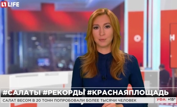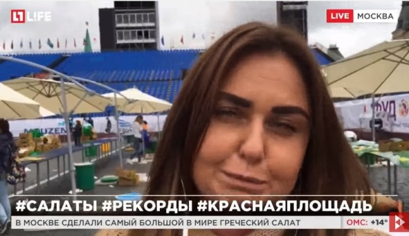 Обратите внимание на бегущую строку в выпуске «Лайф-ньюс», извещающую о том, что салатом весом в 20 тонн удалось якобы накормить более тысячи человек.