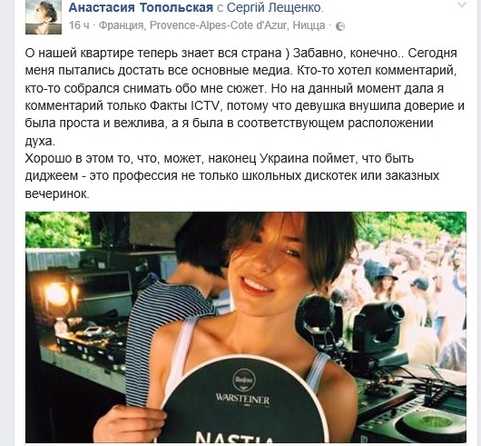 На своей странице в Фейсбуке Настя выразила недоумение по поводу общественного ажиотажа вокруг их квартиры:
