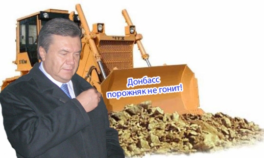 - Виктор Янукович – ну чисто донецкий бульдозер. На боевых фронтах толку от него мало. А вот нагрести на ровном месте такую кучу, чтобы потом её пришлось лет десять разгребать – это запросто! Правда, эту десятилетку регионалы собираются грести исключительно под себя!