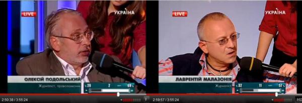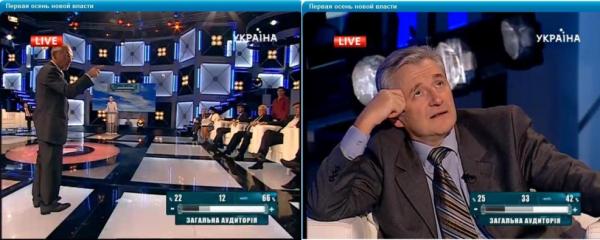 Сразу после этого начался бенефис премьер-министра. Уж не знаю, каким способом удалось заманить в студию «Большой политики» Сергея Пояркова, но Киселев и тут «обломал весь кайф», когда Поярков, как «акита матаги»*, вцепился в Азарова…