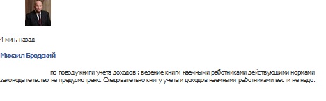 Тиждень тому задала питання пану Бродському, чи потрібно реєструвати книгу обліку доходів на найманих працівників ФОП - платників єдиного податку. Відповідь на дане питання ніхто не міг дати, в порядку ведення даної книгм не йде мова за найманих працівників, в ДПІ не знають. Ніяких нормативних документів з цього приводу немає. Департамент ДПА відповів, що відповіді на дане питання немає в єдиний базі податкових знань. Я повідомила про це Бродського, він пообіцяв, що в найближчий час ця відповідь з"явиться, пройшов тиждень, а віз і нині там. І це при тому, що по новій спрощеній системі ФОП працюють вже місяць, не маючи відповіді на головні питання.