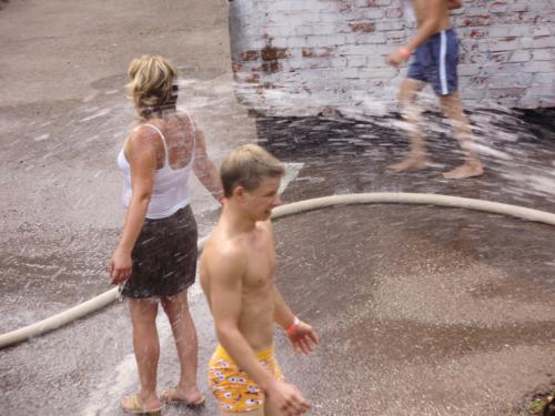 Также днём все желающие могли поиграть в волейбол и футбол, ну или просто позагорать на солнышке. А если становилось жарко, можно было или сходить в душ, или , что ещё интереснее и веселее, облиться прохладной водой из пожарного шланга!