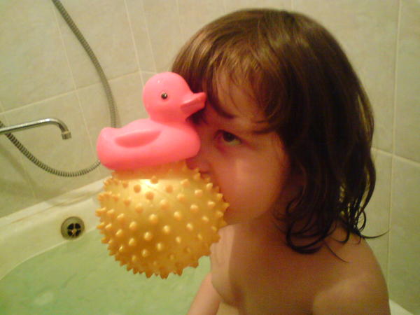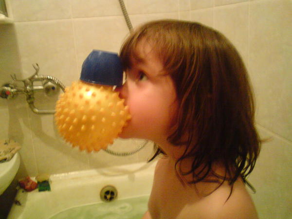 А вот Маша с трудом позвала папу в ванную - посмотреть, что она умеет делать (как ей это удалось, где вдохновение почерпнулось - остается загадкой)