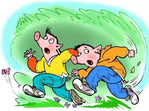 * Хрюнчик і Хрянчик стояли мовчки, не знаючи, що їм робити: тікати чи розмовляти з вовком.