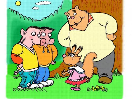 * Ведмідь Васильович не знав слів цієї пісеньки, тому лише підмугикував, і це дуже веселило кабанчиків.