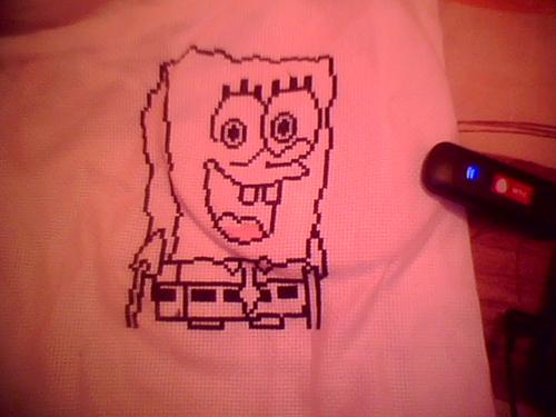 время 2 ночи,а я своему Кукусику вышиваю Спанч Боба))) время до пятницы))) вот,что получилось за сегодняшний вечер))