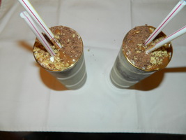 И это все взбиваем миксером или блендером. Только орешки и шоколад оставляем, что бы украшение коктейля. Все готово.