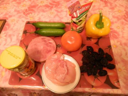 Первое что ми будем делать, это варить курицу. Пока варится, куриться будем нарезать ингредиенты.
