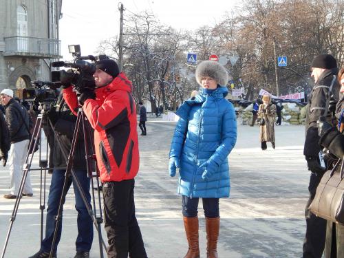 В Чернигове на Аллее Героев начинался мирный митинг… Журналисты в ожидании перфоменса раскручивали длинные шнуры, доставали камеры. Скуууучно…Нет никакого мувинга…Были ребята,кто не скучал. Истинные журналисты! Им интересно на двух фронтах! СТБ ,по моему, вообще любовался сам собой. Нежин –испугавшись вопроса «почему ничего не снимаете» тут же стал произносить заклинание-«фу-фу, тролли, тролли» и лихорадочно все стали надевать жилетки- обереги ПРЕССА. Вот-вот сейчас начнется стрельба, потасовка,сенсации…не началось –печалька…. Професії на світі усі сплелись у