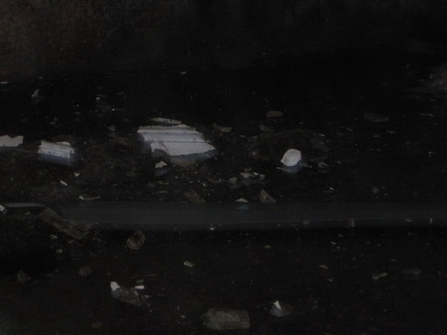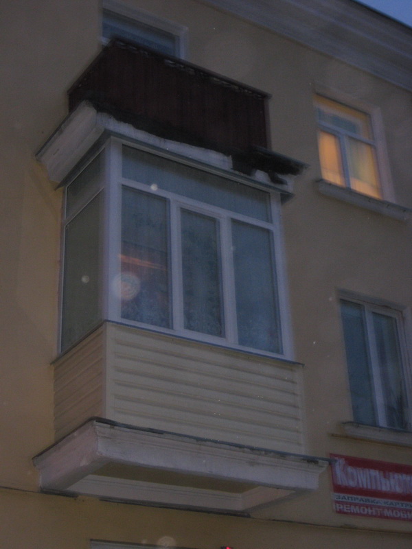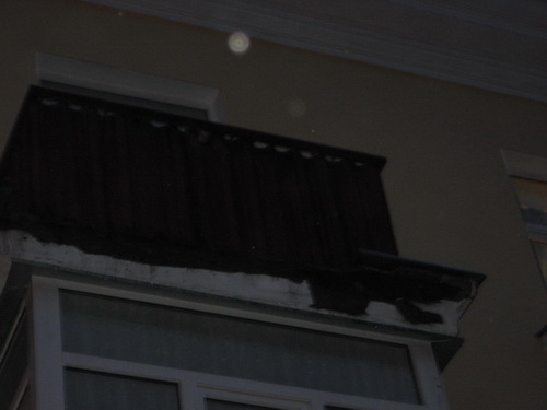 Гуляли с мужем по городу. Погода была не очень. Но предпраздничное настроение было, мы шли и оживлённо разговаривали. Проходили мы возле гастронома напротив главпочтампа и тут услышали шум. Сначала подумали что на землю с крыши упала сосулька. Но... оказалось, что отпала часть балкона, точнее глыбы (см. фото). Самое интересное, что мы только пару секунд назад проходили под этим балконам и если бы это попало на нас, пришлось бы нам плохо... Несколько продавщиц вышли посмотреть и вернулись обратно. Кажется, никого не волновало происшедшее...