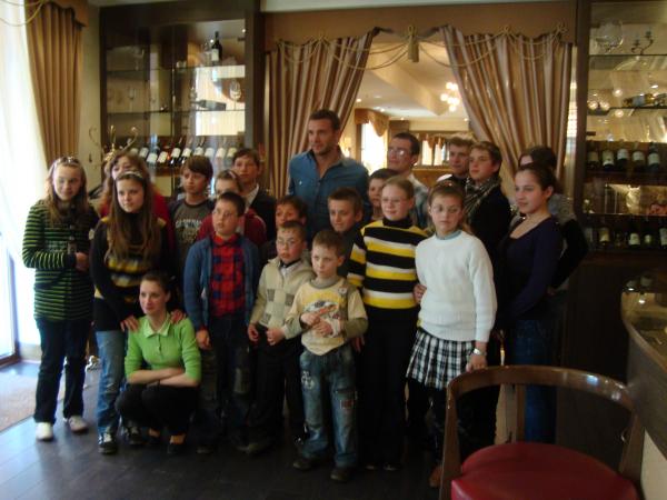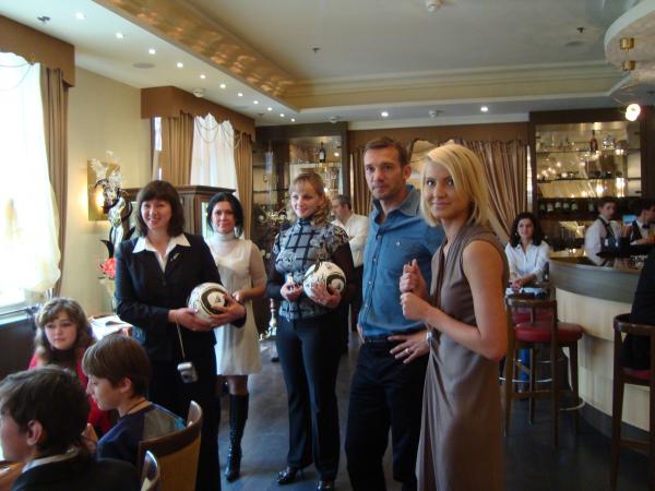 Вчера мы с детками из школы-интерната для слабовидящих ездили в Киев.Там нам организовали развлекательную программу три очаровательные девушки: поход в кинотеатр, праздничный обед,подарки и один маленький сюрприз в виде общения с известным футболистом!