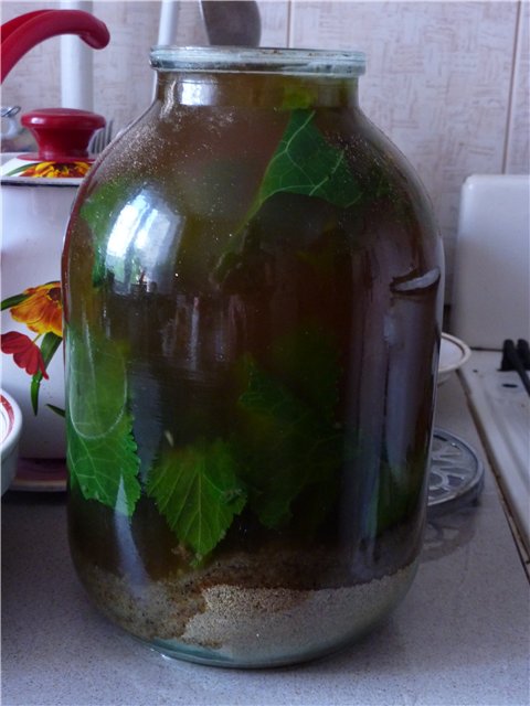5) Листья смородины и хрена, изюм - достаточное количество ))
