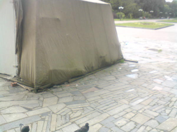 І поряд брудні, немиті, напівпригорілі намети, труба, дим з якої йде на споруду…