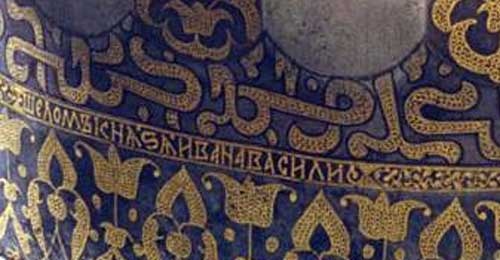 особенно интересными становится факт нахождения на царских доспехах сур из корана, если вспомнить, что и на царской сабле, и на кинжале они нанесены, преспокойно соседствуя с клеймом тульского оружейного мастера.