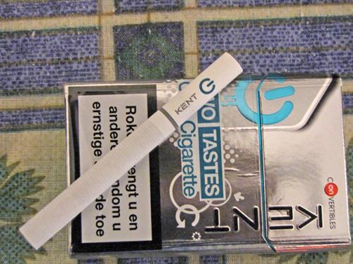 Да, еще сигареты «KENT» двойной тест. Не курю уже пять лет, а тут решил попробовать. Надеюсь дурная привычка не возобновится, просто захотелось испытать оригинальное исполнение сигарет. На фильтре нарисован значок «включение», как на вашем компьютере. Можно курить, как обычную сигарету, а можно нажав на значок и раздавив ампулу, курить, как ментоловую. Сигареты дорогие, пачка — 5,20 евро.