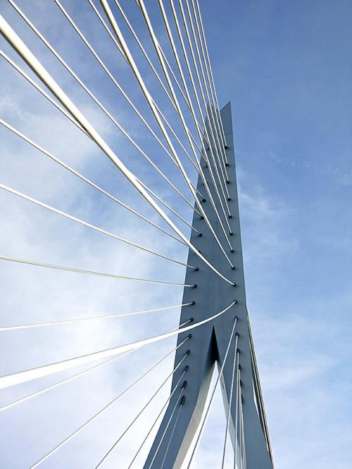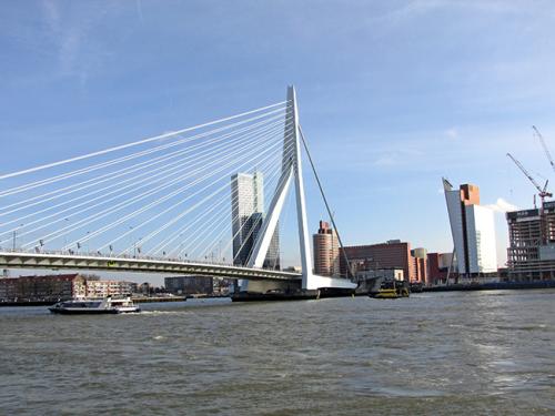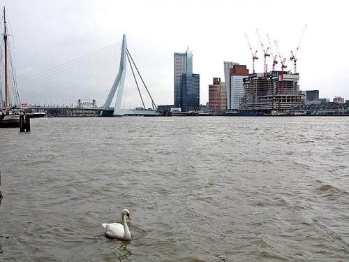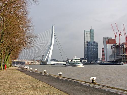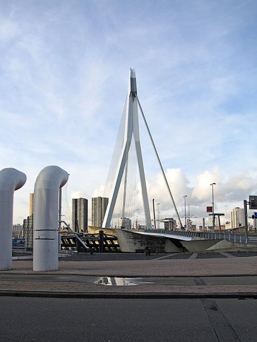 Хочу представить вашему вниманию главный символ Роттердама — мост Эразма (Erasmusbrug). Не могу равнодушно проходить мимо этого грандиозного сооружения. При разном освещении, он всегда выглядит по-новому — захватывает и возбуждает воображение, и руки сами тянутся к фотоаппарату.