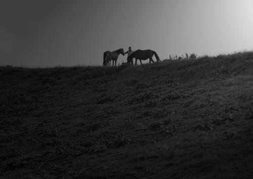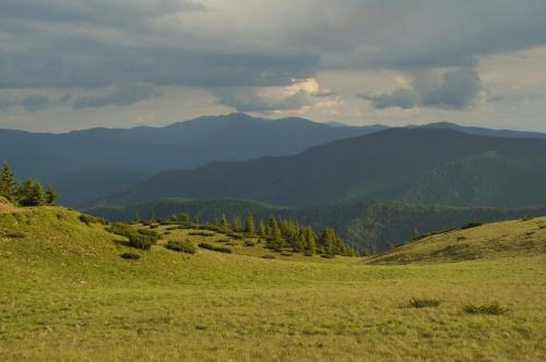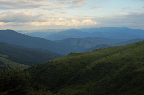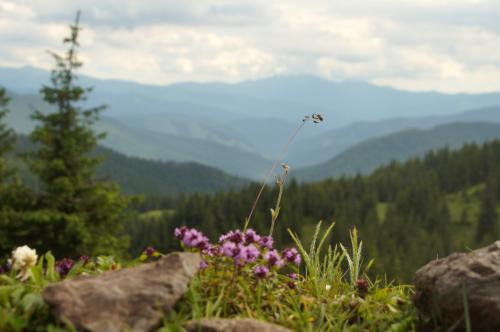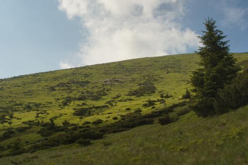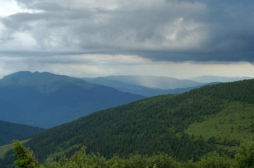 Рядом с Говерлой находится не менее значимая гора Петрос(чортова гора). На наличие чертей лучше всего проверять зимой, когда вьюги и метели. Между Говерлой и Петросом небольшой перевал, если уйти по тропинке вправо, то попадешь скорее всего в село, расположенное далеко в долине. Я пошел влево по траверсу горы. Тропинка тянется несколько километров до перевала на Квасы и дальше. По левую сторону пейзажи до Румынии, по правую склон хребта. Прогулка запомнилась тремя событиями.