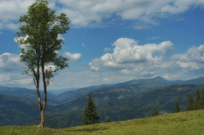 На самой вершине горы Шоймул прям над полониной с колыбой раскинулся древесный камертон, где можно настроить любой музыкальный инструмент. Я настроил дудук.