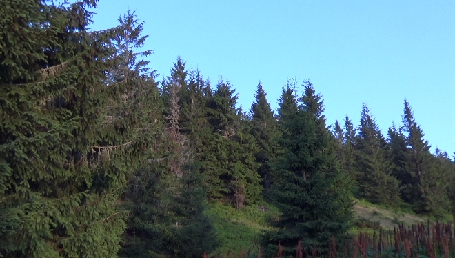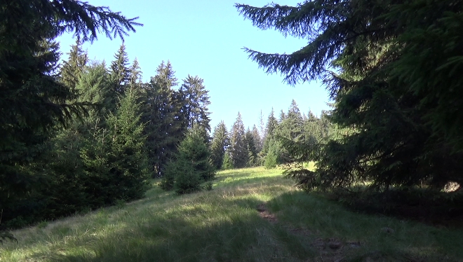 Прошел вдоль реки Брадолец и быстро оставил село позади, войдя в лес. Пришлось 4 раза пересекать две горные речки, которые бежали параллельно через лес между камней и смерек. Мне казалось, что иду правильно, дорогая широкая, езженная.