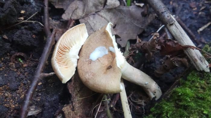 Под ногами выскочил млечник толи дубовый, толи извилистый, тоже нечастый гость на грибной тропе.
