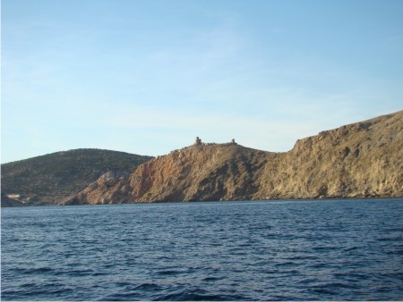 добраться до "затерянного мира" можно только на лодке(вернее лучше,ибо пешком опасно и долго)-вид на крепость Чембала с корабля.