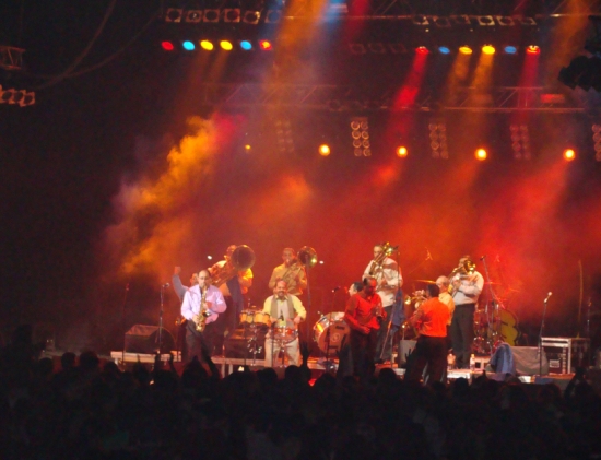 Эмир Кустурица с The No Smoking Orchestra (Сербия). Среди участников были замечены наши «Гайдамаки» ,Fanfare Ciocаrlia (Румыния), Koсani Orkestar (Македония) иі Kal (Сербиія).
