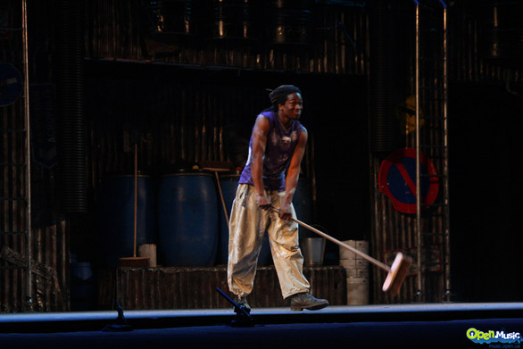Это мюзикл без музыки, все действо основано на ритме, на игре артистов на самых разных инструментах, создающих шум. Здесь отлично сочетается брейк, степ, акробатика и конечно необыкновенные ритмы, это главное. Да, ну и отличный юмор. В список музыкальных инструментов входят: более дюжины швабр (одна из которых сломалась в первую же минуту представления),около десятка ведер, песок (да, Stomp не только самозабвенно грохочет, но и душевно шелестит), барабанные палочки, много литров воды, десяток длиннющих жердей и куча коробков спичек. Самый музыкальный инструмент — безусловно, швабра: звуки, извлекаемые с ее помощью артистами, прекрасны своим разнообразием. От крадущейся угрозы до искреннего счастья. Кто б мог подумать, на что способна старая добрая швабра. А..и мусорные баки!!!Без них никак-это и барабаны,и бонги ,и тамтамы ))) Искусство делать чудесные ритмы из ничего и ни откуда. Два часа абсолютного позитива, улыбки и кайфа. Прекрасно, что последние минут 30 ритм отбивали совместно с залом. Вы не представляете, как это заразительно-сегодня весь день стучу то на спичечных коробках, то на кастрюляхи т.п.,а уборка ..это ж целый концерт можно организовать))