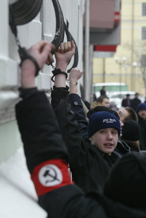 "2004 год, захват приемной президента НБПшниками. На фото - 16-летний Сухорада, будущий владивостокский партизан, погибший в неравном бою (звучит как-то идиотски, но он правда погиб в бою и это бой был неравный). Рассказывайте теперь про взбунтовавшихся бандитов и рекетиров, мстящих милиции за отнятые лесные делянки (или какая там нынче официальная версия? Агенты ЦРУ?)."