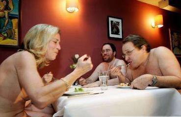 - Также, в городе контрастов Нью-Йорк есть ресторан для…да-да, для нудистов. Обслуживающий персонал ресторана Clothing Optional Dinner должен быть в одежде, а гости приносят с собой подстилки, на которые садятся. Как показывают исследования, особой популярностью ресторан пользуется у европейских туристах 40-50 лет. По рассказам посетителей, нигде и никогда они свободней и раскованней себя не чувствовали.