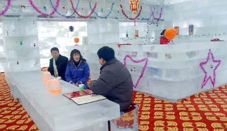 - В одном из ресторанов Харбина (Китай), на Солнечном острове, посетители, окруженные стенами изо льда, обедают при температуре минус 4 градуса по Цельсию. Здесь бы неплохо подошел горячий борщик, да со свежньким сальцом!