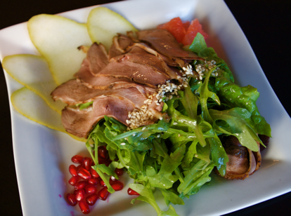 - Салат из утиной грудинки с рукколой под соусом из сезама 39грн. (что-то итальянское);