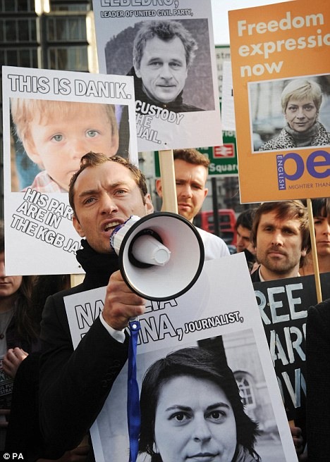 Шествие началось перед офисом пиар-фирмы, привлекающей инвестиции в Беларусь, и завершилось у здания парламента Великобритании. Джуд Лоу заявил: