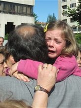 Каналы наперебой показывают, как громко рыдающую девочку никак не могли уговорить выйти из машины (это, по словам корреспондента, продолжалось почти полчаса) и в итоге вынесли из автомобиля на руках, чтобы передать от португальских "родителей" к родной матери-россиянке.
