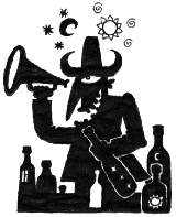 ...Назавтра отправились к Олесю в гости. Хоть я уже давно привык к колдунско-рокерскому образу Ульяна, дома у него я оказался впервые и, надо сказать, странная квартира мэтра оказалась столь экзотична для моего неподготовленного сознания, что только три бутылки трёхзвёздочного коньяку помогли сгладить эту невыносимую шероховатость бытия.