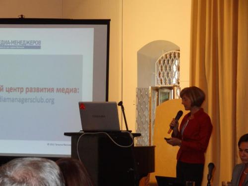 Известная в медиакругах бывший зам по маркетингу главы WAN Татьяна Репкова делает презентацию своего нового он-лайн проекта - клуба медиаменеджеров.