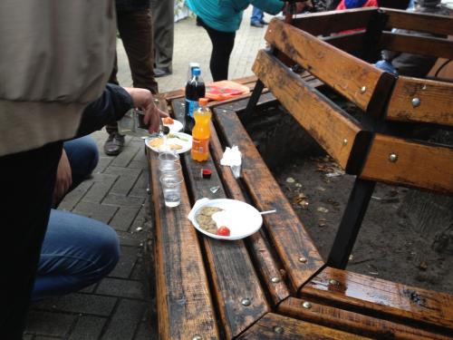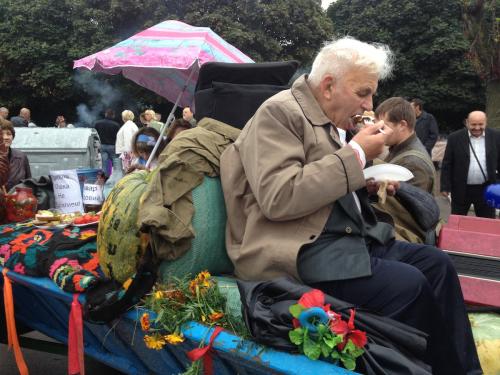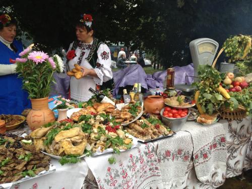 "Красоты" в центральном парке было много. Все сфотографировать не удалось. Ну вот несколько из них, чтобы ощутили колорит происходящего. Продавать деруны вышли все. Общепит, школы, культучреждения, простые горожане. Ни о каких санитарных нормах никто не слышал, раскладывались прямо бордюрах, на земле и т. д. Я человек не слишком брезгливый, поэтому меня не сильно все это кумарило, но вообще выглядело это местами совсем печально. Ну и хочу сказать, что чисто визуально точек по продаже дерунов и сопутствующих закусок было не менее сотни.