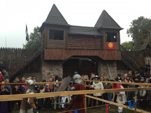 У подножия памятника развернулась еще одна фестивальная площадка. Фестиваль реконструкторов. Рыцари, поединки, бла-бла, ну, типа нашей Коровели. Тока более по-человечески организовано. В смысле, не как просто тусовка, а для зрителей. Вообще в этот день в Коростене было типа целых три фестиваля: деруны, рыцари и еще "Играй гармонь". Как вам набор? ))