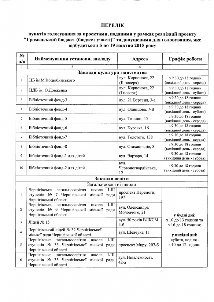 В основном это школы и библиотеки в разных районах города. Наши проекты находятся в таком голубом бюллетене под номерами 4, 5 и 14. Это проекты "Зелена Сцена" и "Литера", а также установка многострадальной малой крытой городской сцены, так необходимой городу.
