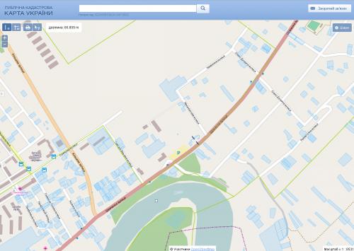 На том же сайте с Публичной кадастровой картой Украины в левом верхнем углу есть такой инструмент, как линейка, с помощью которой можно отмерить расстояние от края проезжей части улицы Шевченко до предполагаемой стены жилого дома.