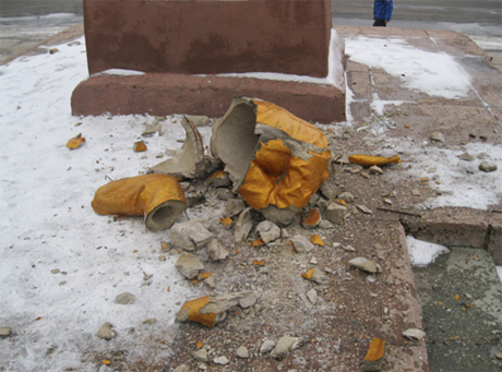 На будущее. Подсказываю. Возле ДК «Химик» в городе Сумы, после правильного разрушения памятника, коммуняки установили без каких-либо разрешений исполкома или даже управления архитектуры, не говоря уже о решении городского совета, «голову-бюст» оного идола. Говорят, взяли из остатков-осколков «лебединского», так же праведно разрушенного. Так вот, никакого архитектурного значения эта «голова» не имеет и на балансе Сумского городского совета не значится, равно как и «дедушка, переехавший на Дуровщину с площади Независимости».