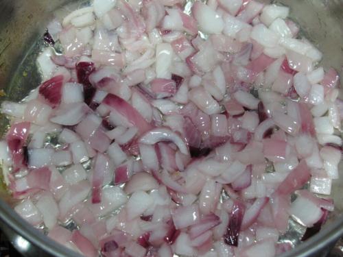 1. В кастрюле с толстым дном обжариваем лук до прозрачности