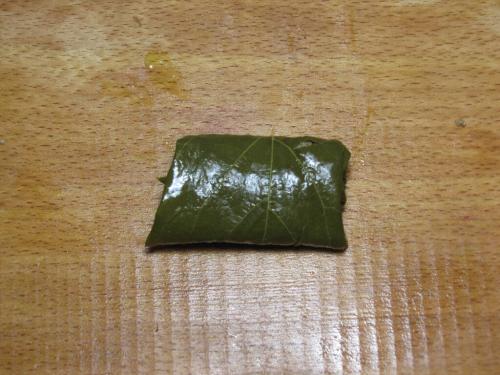 7. А теперь познаем премудрость заворачивания фарша. Берем лист, кладем его глянцевой стороной вниз, шершавой вверх. Вырезаем черенок.
