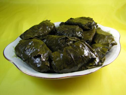 14. Ну что, выкладываем долму на блюдо и подаем с соусом из сметаны с солью и чесноком.