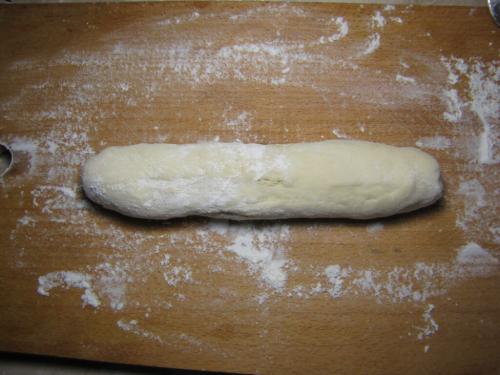 2. От теста отрываем кусок и раскатываем его в колбаску.