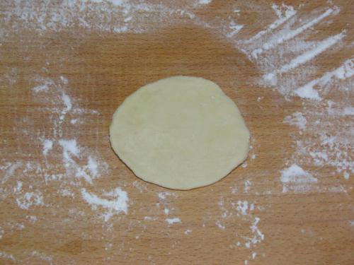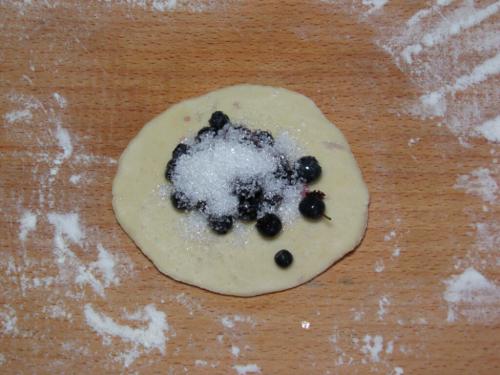5. В центр кладем чайную ложку начинки, присыпаем сахаром.