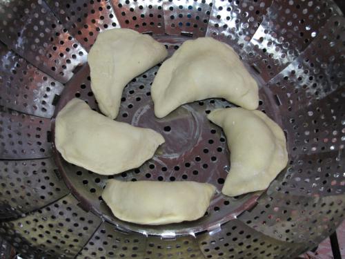 7. Наши "полумесяцы" выкладываем на смазанную сливочным маслом пароварку. Держим их на пару пять минут, не больше.