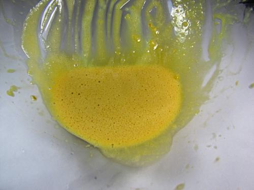 4. Теперь тщательно перемешаем желток с солью и одной-двумя столовыми ложками оливкового масла. Масло добавляем по чуть-чуть, буквально по половине чайной ложечки. Когда мы получим однородную смесь, добавим давленый чеснок и по чайной ложке лимонного сока и вустерского соуса, и снова все тщательно, тщательно перемешаем. В результате, мы получим соус, очень похожий на домашний майонез (но слегка отдающего рыбой из-за вустер...ну вы поняли).