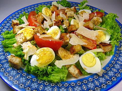 Итак, салат Цезарь. Конечно, к Гаю Юлию "И ты, Брут" Цезарю он никакого отношения не имеет. Изобрел его некто Цезарь Кардини, который содержал ресторанчик в мексиканском городке Тихуана в 20-х годах прошлого века. Благодаря близости к границе, а главное, полному бару спиртного, это заведение было популярно среди измученных сухим законом американцев. И вот, однажды, они так увлеклись отмечанием дня независимости, что умножили на ноль практически всю еду в ресторане. Цезарю пришлось выдумывать закусь из остатков на кухне. Собственно, так этот салат на свет и появился.