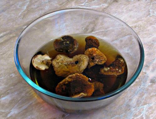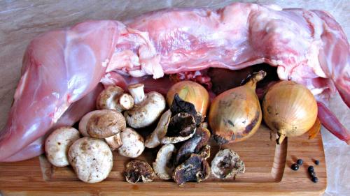 Сразу же заливаем сухие грибы водой, пусть стоят столько же, как и кролик.