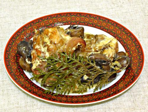 Заливаем грибным настоем и отправляем в разогретую до 180 градусов духовку на полтора часа.